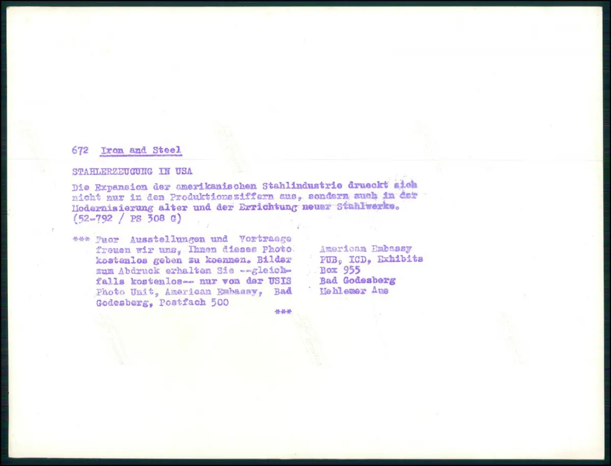 Foto 24x18cm Stahlarbeiter in USA bei der Arbeit am Hochofen in den 1950er Jahre