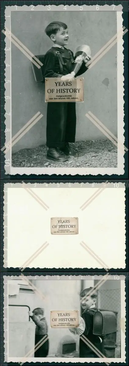 Foto 2x kleiner Junge mit Schulranzen Zuckertüte Einschulung Essen Ruhrgebiet
