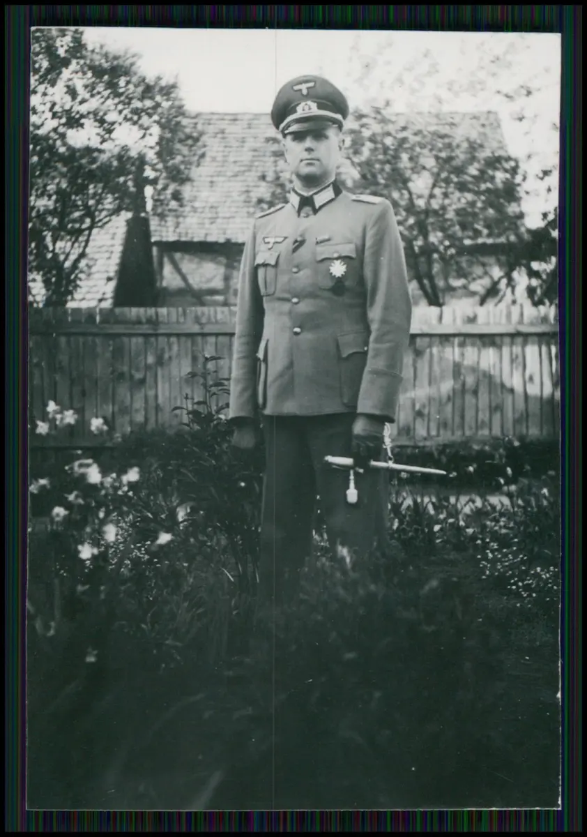 Foto 8x5cm - Stand-Portrait Soldat Wehrmacht u. Zettel Brief handschriftliche Widmung