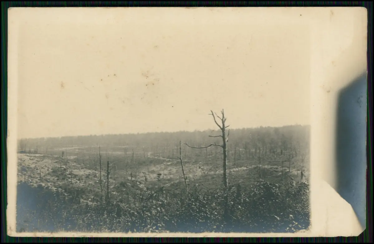 Foto AK 1. WK - zerbombtes Waldgelände bei Verdun 1917 - französischen Stellung