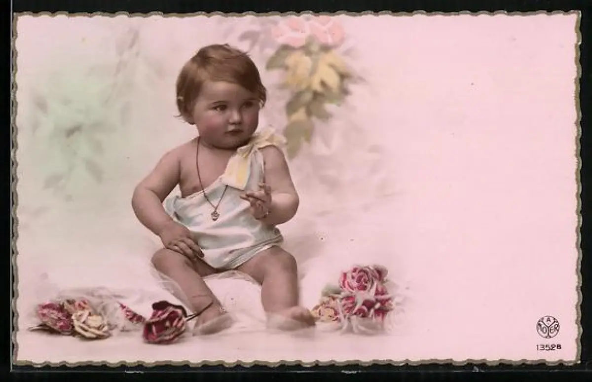 Foto-AK A. Noyer Nr. 1352B: Baby mit Blumen