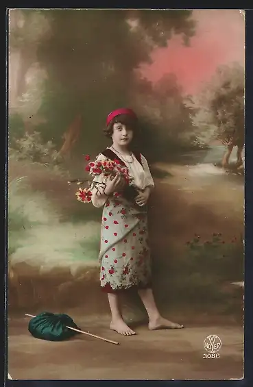 Foto-AK A. Noyer Nr. 3086: Junges Mädchen mit Sackerl