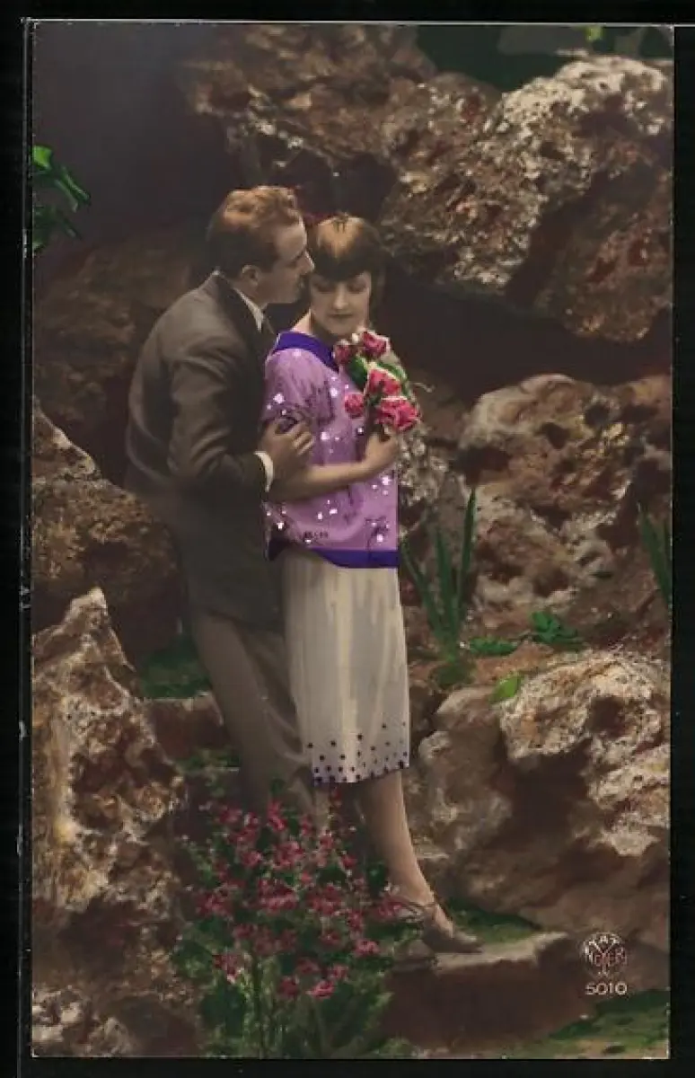 Foto-AK A. Noyer Nr. 5010: Junges Paar inmitten von Felsen