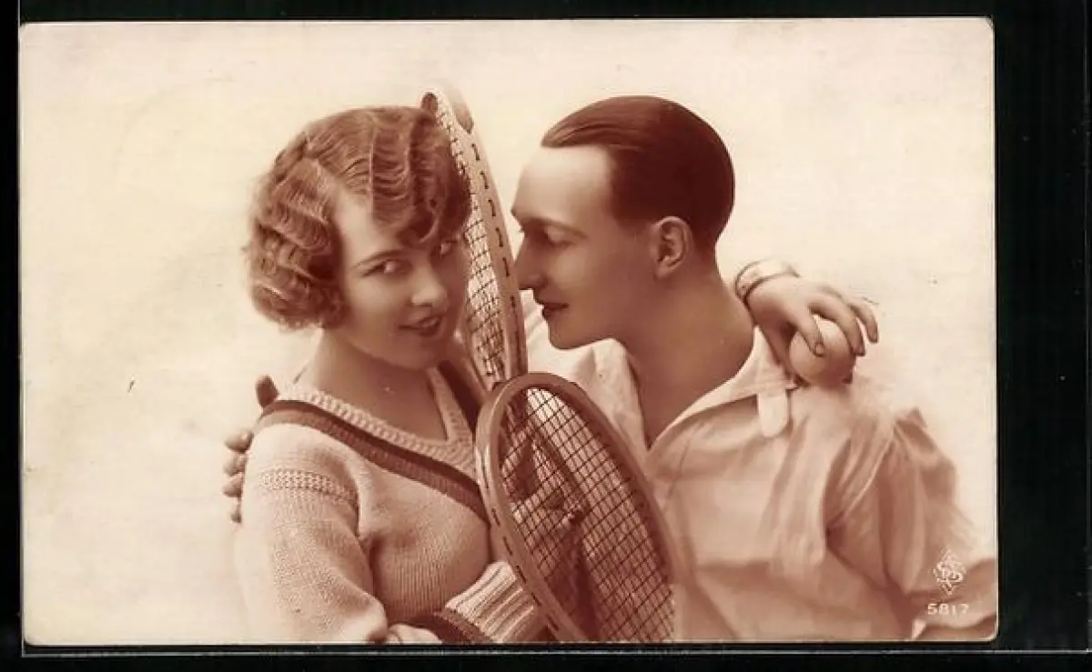 Foto-AK ASR Nr. 5817: Paar mit Tennisschlägern in intimer Pose