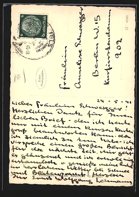 alte Ansichtskarte, gelaufen 1941, guter Zustand