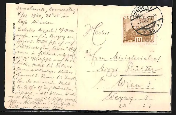alte Ansichtskarte, gelaufen 1930, Stempelspur, guter Zustand