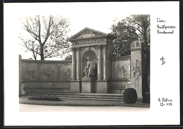 Foto-AK Adalbert Defner: Wien, Grillparzer-Denkmal mit Skulptur