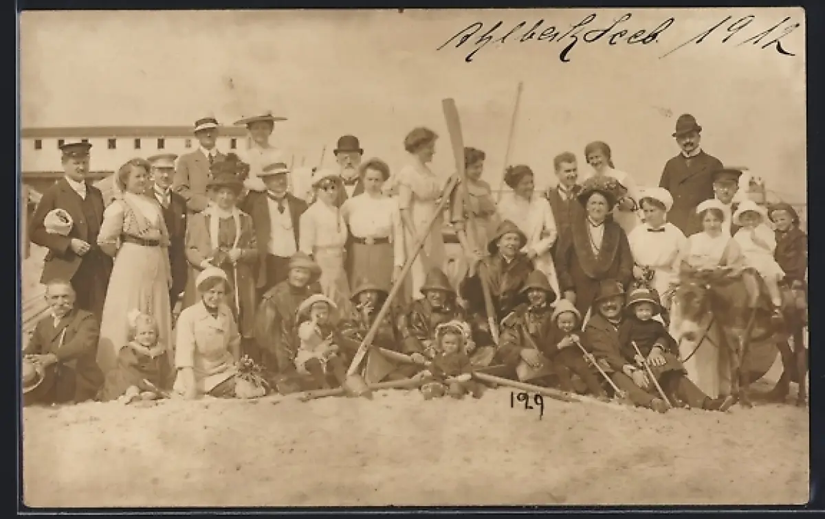 Foto-AK Ahlbeck / Ostseebad, Urlauber mit Kindern u. Esel am Strand, 1912