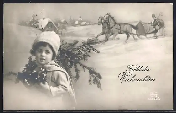 Foto-AK Amag Nr. 62848 /2: Junges Mädchen in einer Winter-Studiokulisse