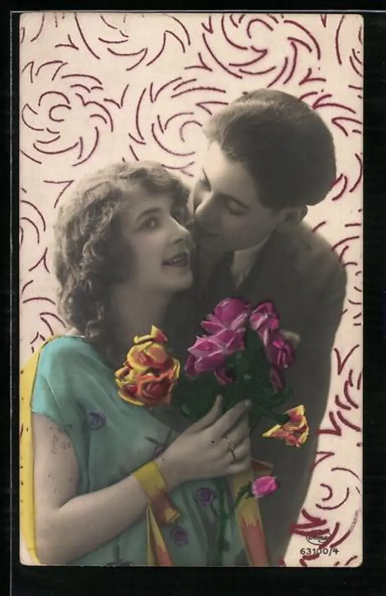 Foto-AK Amag Nr. 63100/4: Junger Mann in trauter Zweisamkeit mit junger Frau