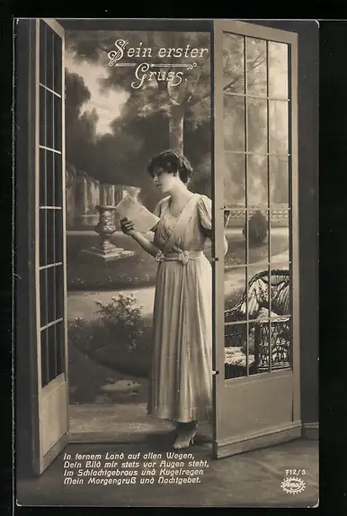 Foto-AK Amag Nr. 712 /3: In fernem Land auf allen Wegen..., Frau mit Brief