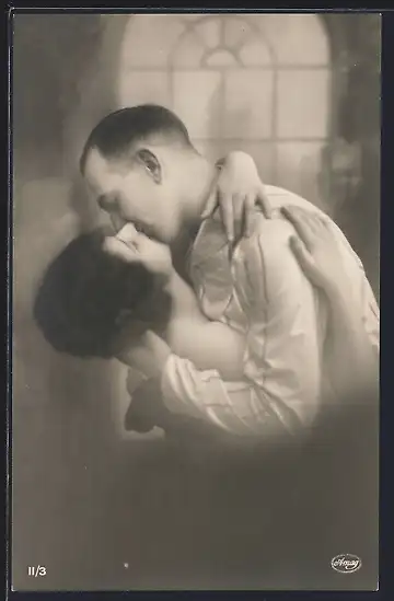 Foto-AK Amag Nr. II /3: Junges Paar beim leidenschaftlichen Kuss