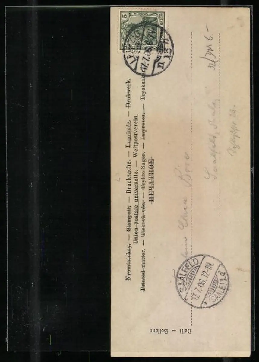 alte Ansichtskarte, gelaufen 1906, Stempelspur, guter Zustand
