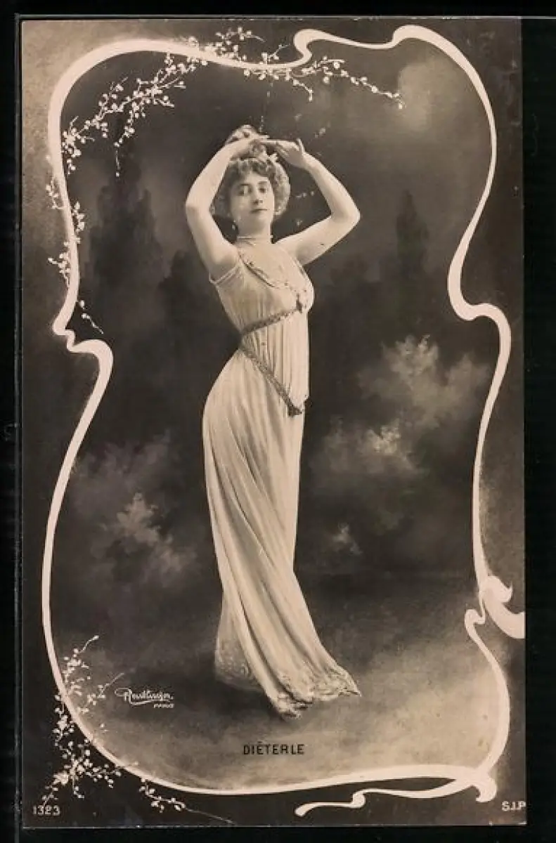 Foto-AK Atelier Reutlinger, Paris: Diéterle im Kleid porträtiert