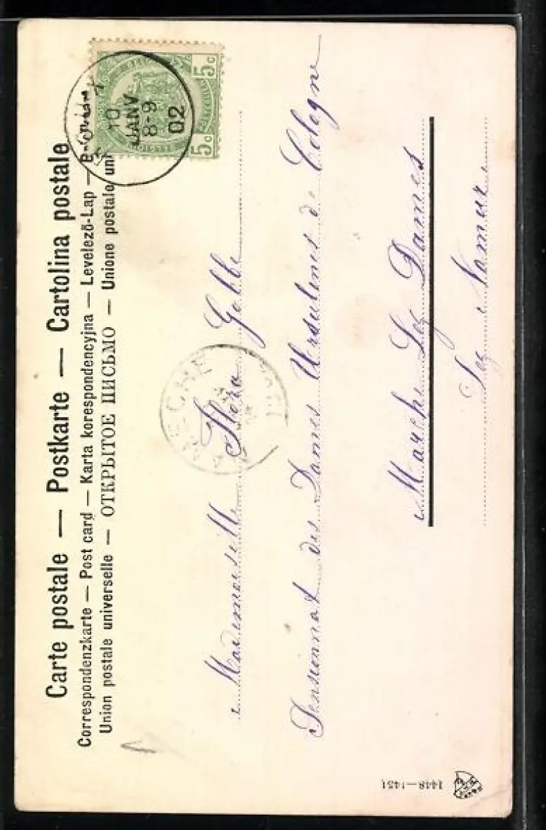 alte Ansichtskarte, gelaufen 1902, Stempelspur, guter Zustand