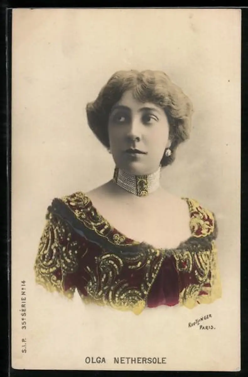 Foto-AK Atelier Reutlinger, Paris, Schauspielerin Olga Nethersole blickt in die Ferne