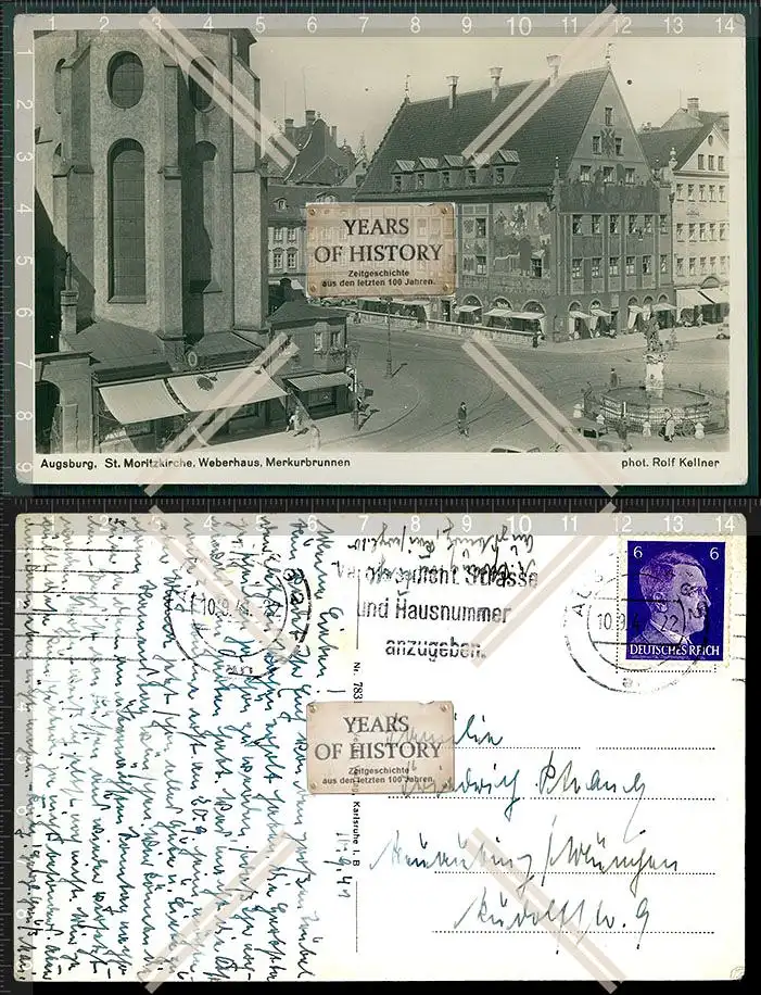 Foto AK Augsburg Moritzkirche Weberhaus Merkurbrunnen 1941 gelaufen M2022-11-24-101Foto AK Augsburg Moritzkirche Weberhaus Merkurbrunnen 1941 gelaufen