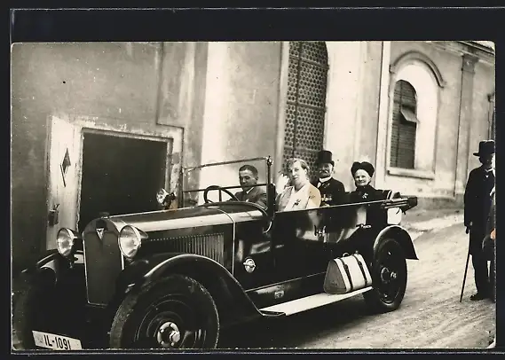 Foto-AK Auto Adler, Josefine Fröhlich und ihr Mann im KFZ