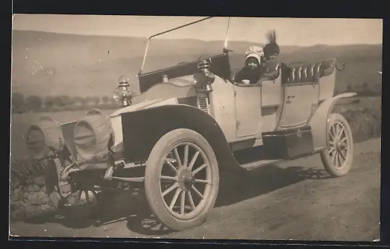 Foto-AK Auto Clement-Bayard (1909), Mädchen und ihre Mutter im Automobil am Strassenrand