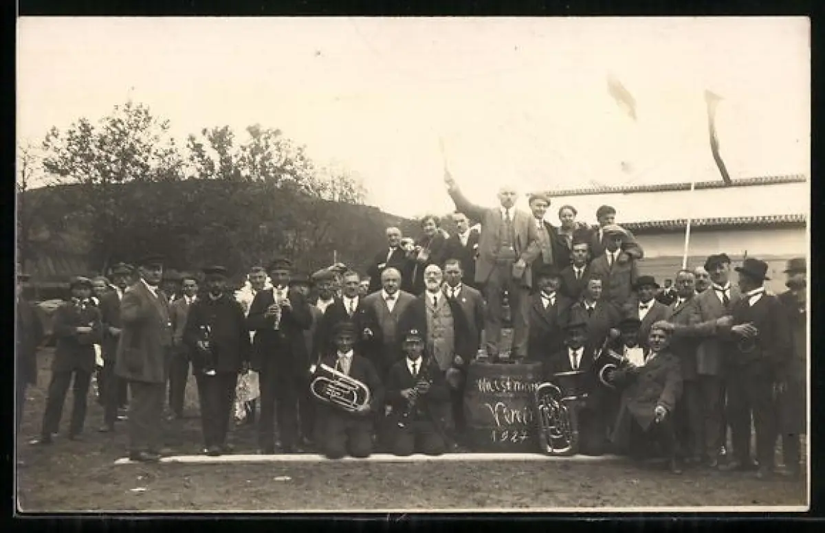 Foto-AK Bad Dürkheim, Wurstmarkt 1927, Gruppenbild eines Vereins