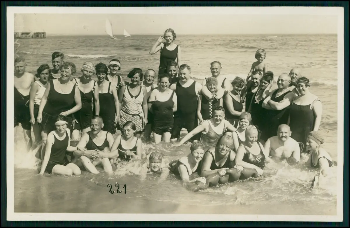 Foto AK Badegruppe Timmendorfer Strand Bademode Wasser Spaß Photo-Haus P. Pohlke