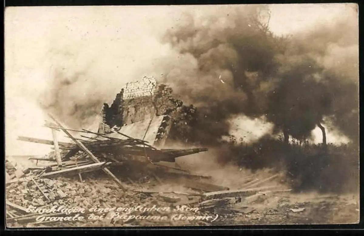 Foto-AK Bapaume, Einschlagen einer englischen 38 cm Granate