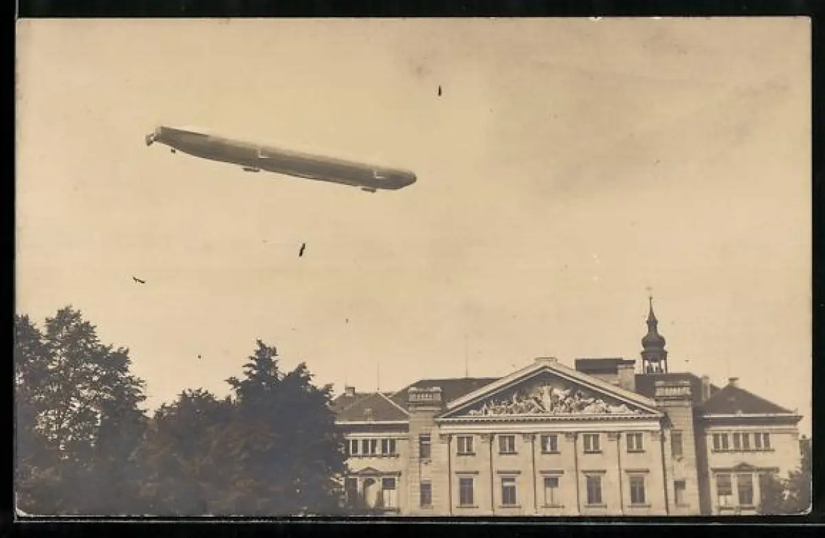 Foto-AK Bautzen, Zeppelin über der Stadt