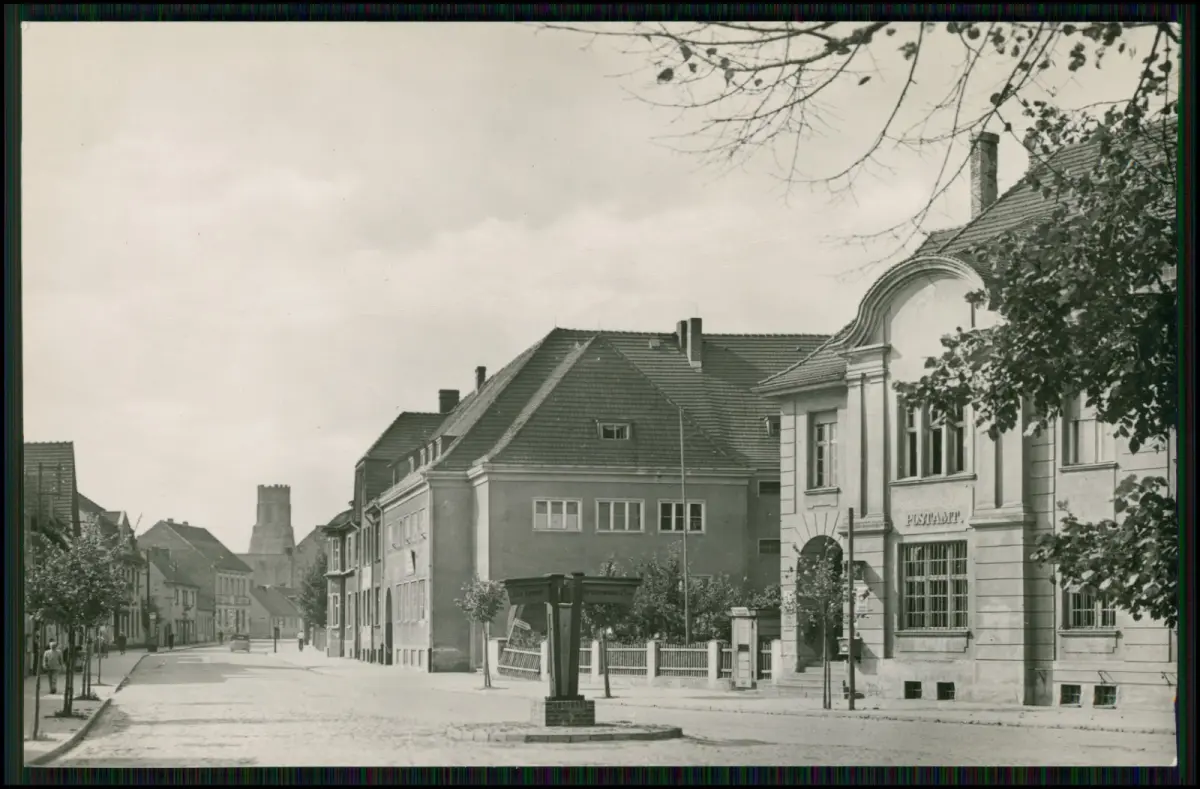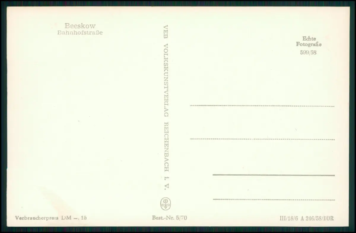 Foto AK - Beeskow Oder-Spree - Bahnhofstraße mit Postamt Schilder Bürgerhäuser