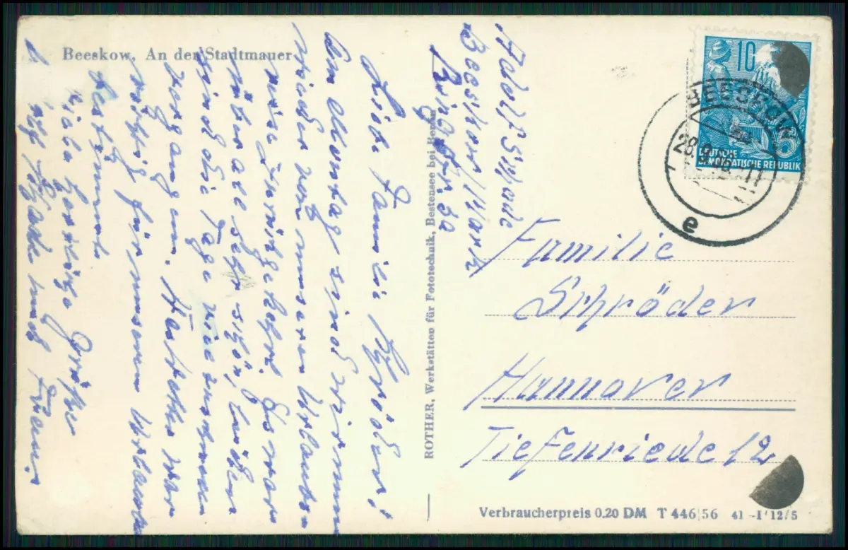 Foto AK - Beeskow Oder-Spree - alte Stadtmauer Wehrturm Kopfsteinpflasterstraße