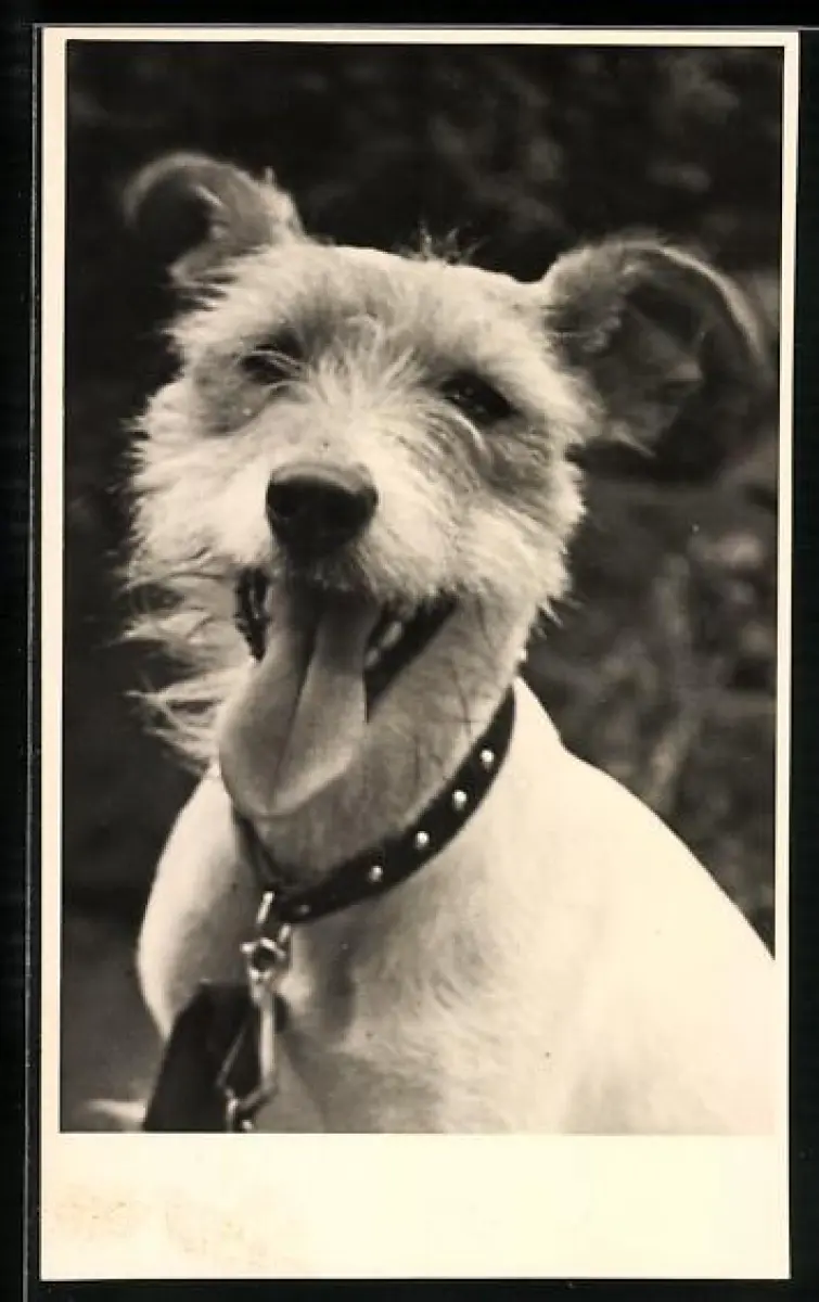 Foto-AK Bellender Terrier mit Halsband, Portrait