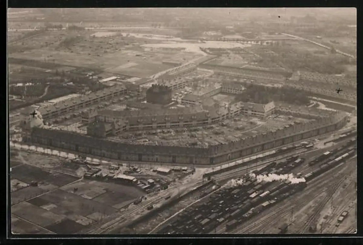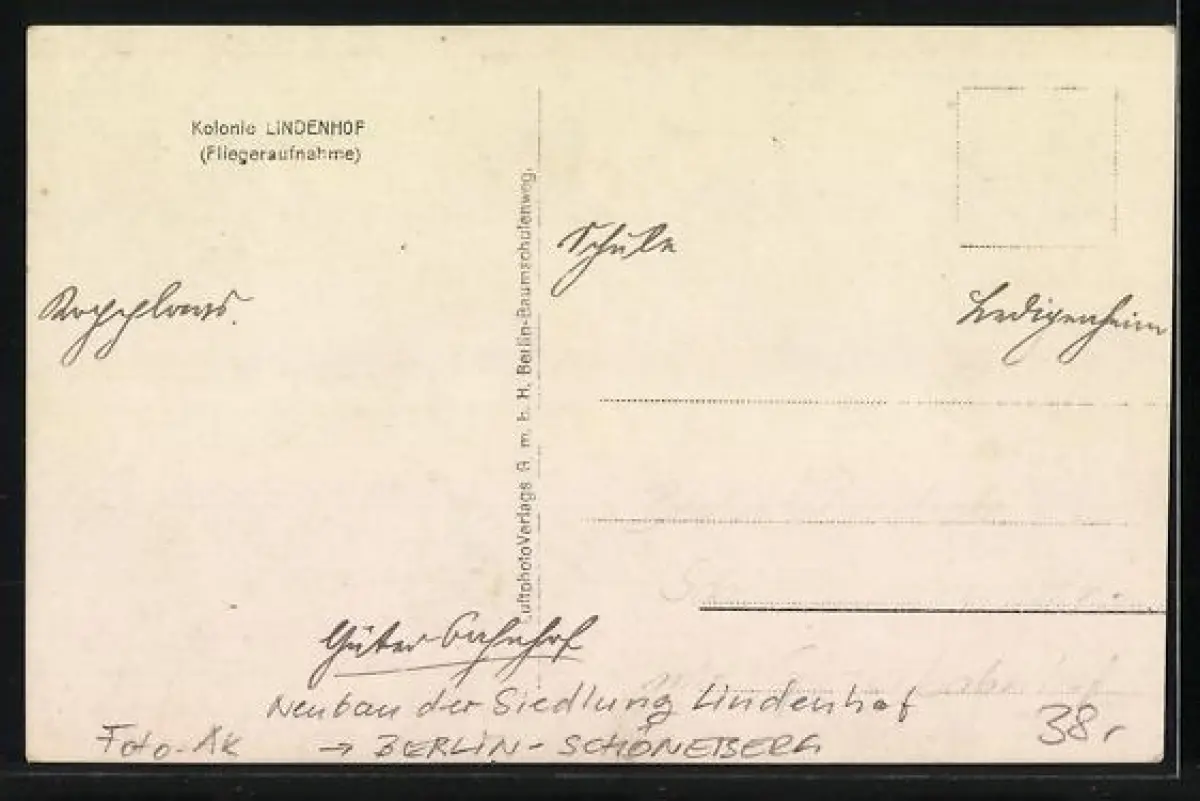 Foto-AK Berlin-Schöneberg, Neubau der Siedlung Lindenhof, Fliegeraufnahme