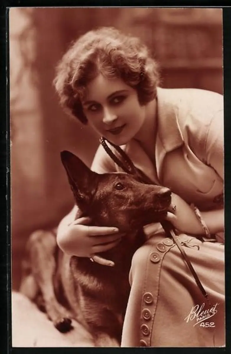Foto-AK Bleuet Paris Nr. 452: Junge Dame mit Hund