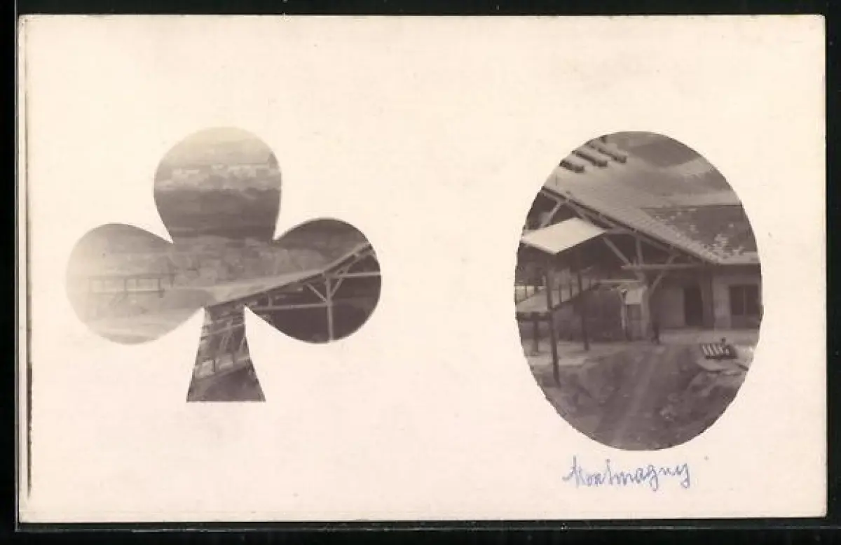 Foto-AK Blick auf eine Scheune durch Kreuzform und ovale Form