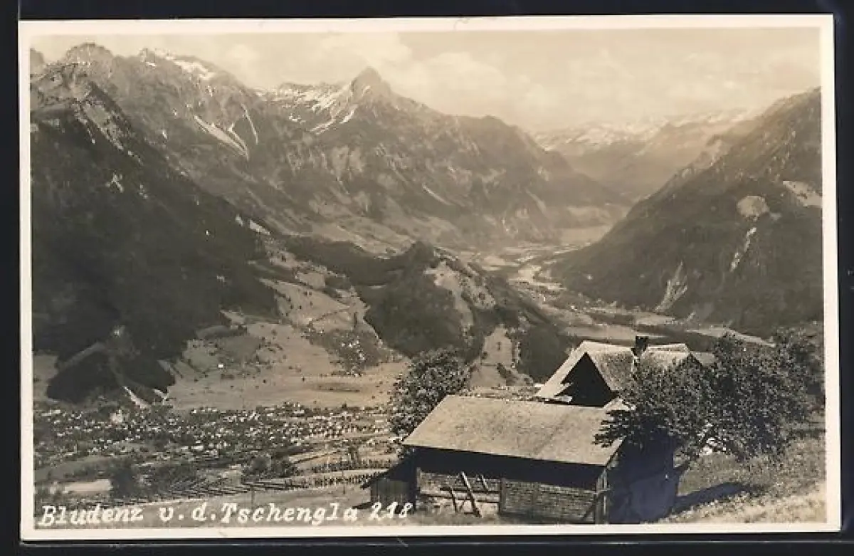 Foto-AK Bludenz, Ortsansicht von der Tschengla aus
