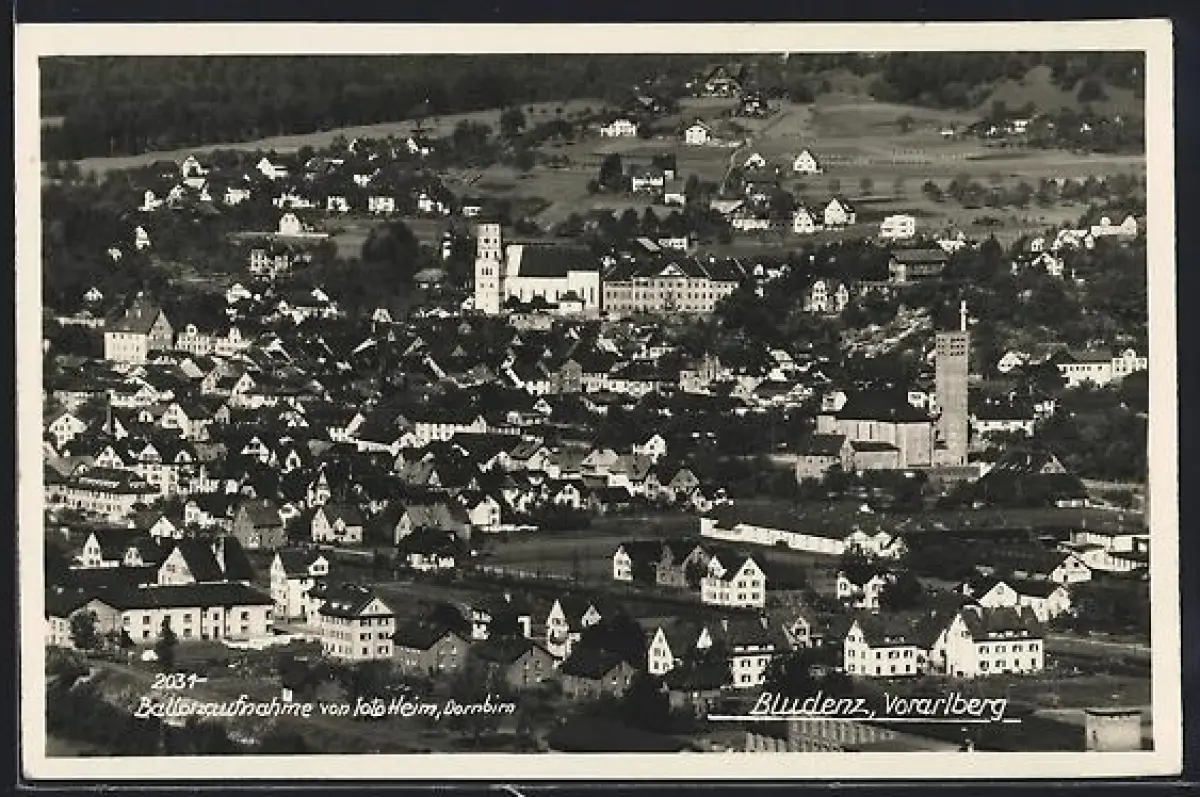 Foto-AK Bludenz /Vorarlberg, Ortsansicht mit Kirchen von Ballon aus aufgenommen