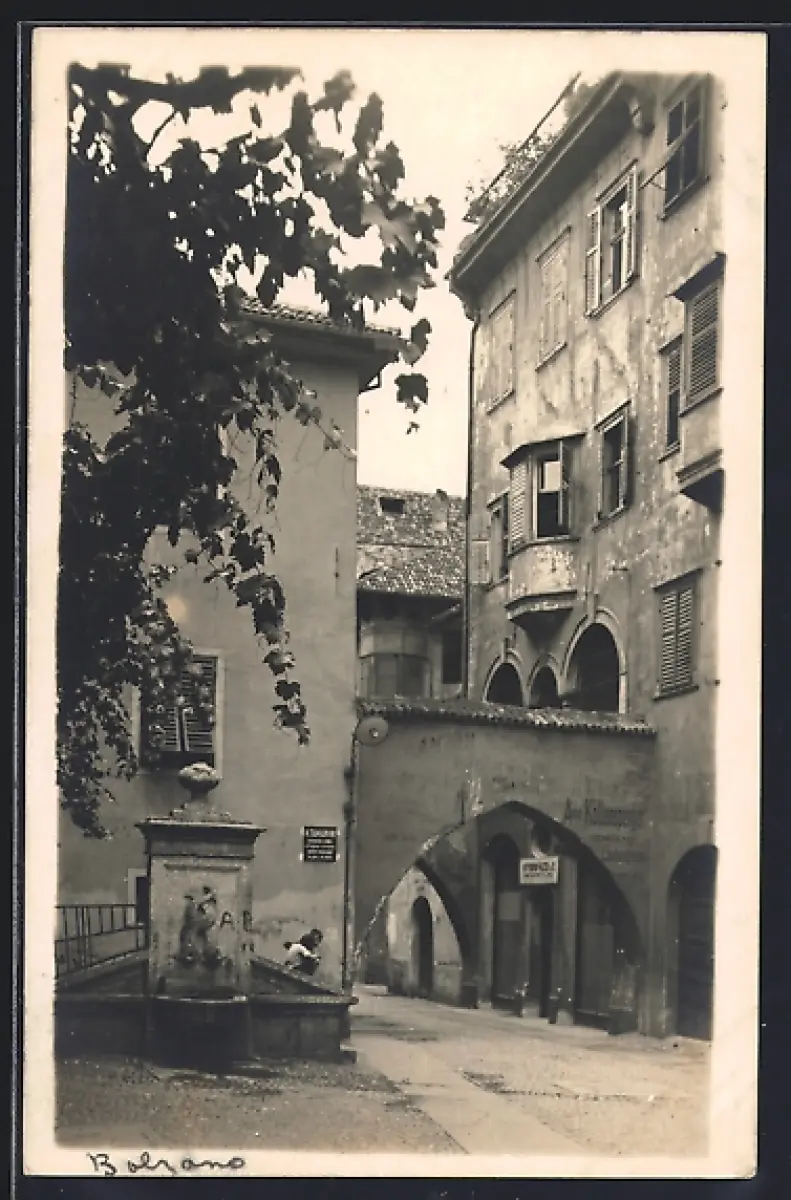 Foto-AK Bolzano, Strassenpartie mit Brunnen