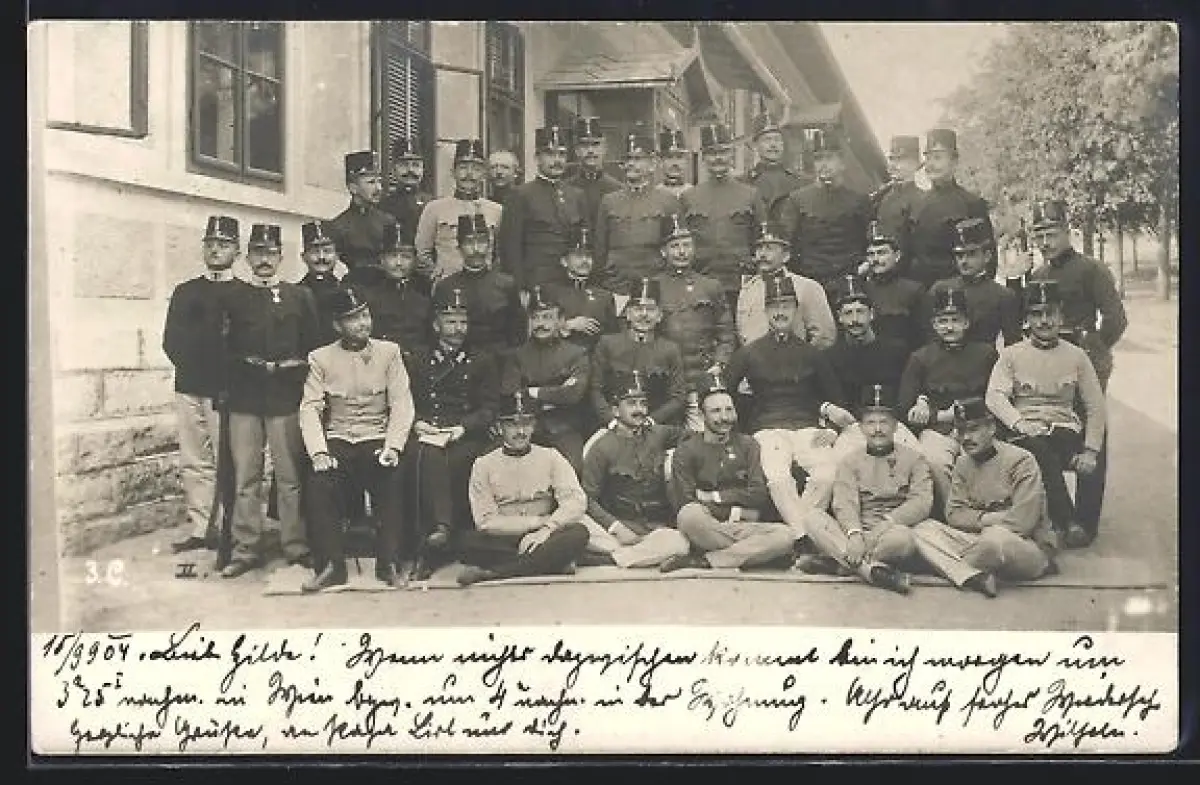 Foto-AK Brucker Lager, Gruppenbild von Soldaten in Uniformen