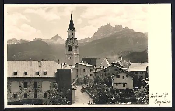 Foto-AK Cortina d`Ampezzo, Panorama mit Kirche