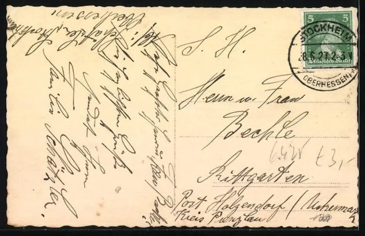 gelaufen 1927, Eckknick oben re., guter Zustand