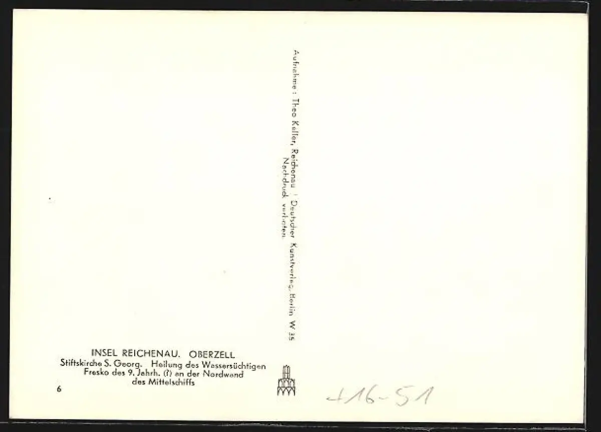 Foto-AK Deutscher Kunstverlag: Insel Reichenau /Oberzell, Stiftskirche St. Georg, Heilung des Wassersüchtigen