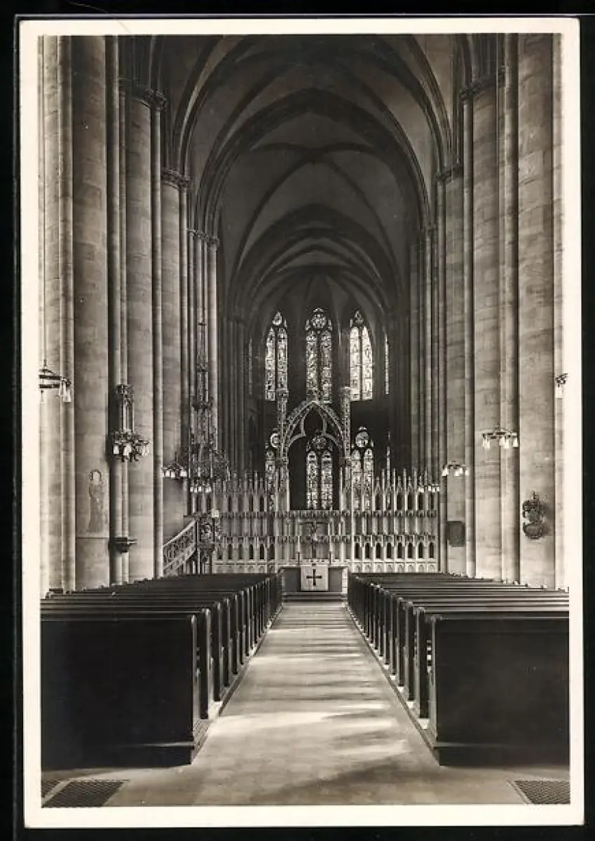 Foto-AK Deutscher Kunstverlag, Nr. 1: Marburg, Elisabethkirche, Mittelschiff, Innenansicht