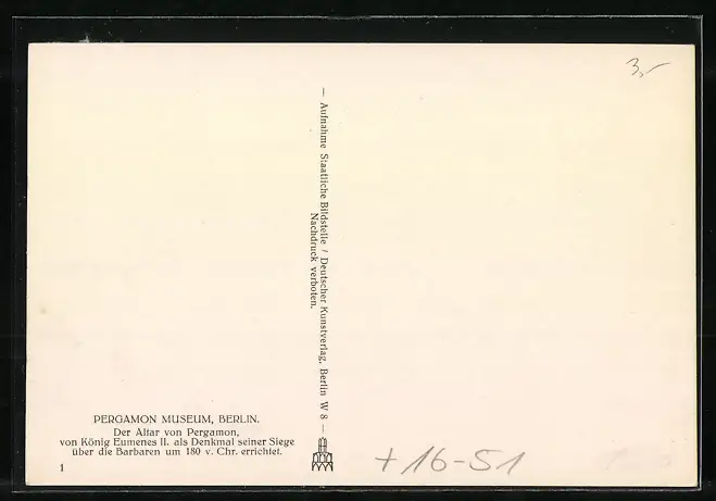 Foto-AK Deutscher Kunstverlag, Nr. 1: Pergamon-Museum zu Berlin, der Altar von Pergamon
