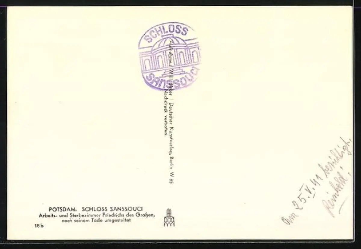 Foto-AK Deutscher Kunstverlag, Nr. 18b: Potsdam, Schloss Sanssouci, Arbeits- und Sterbezimmer Friedrichs des Grossen