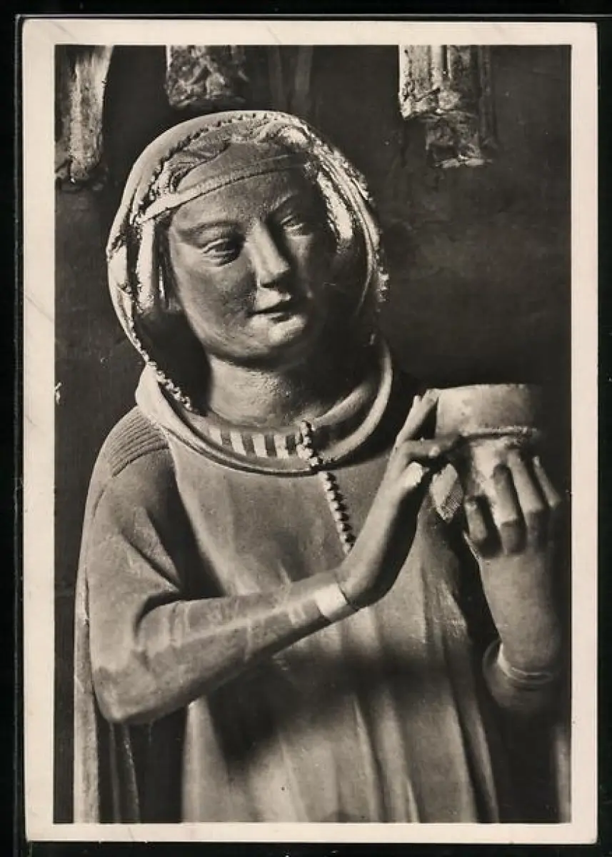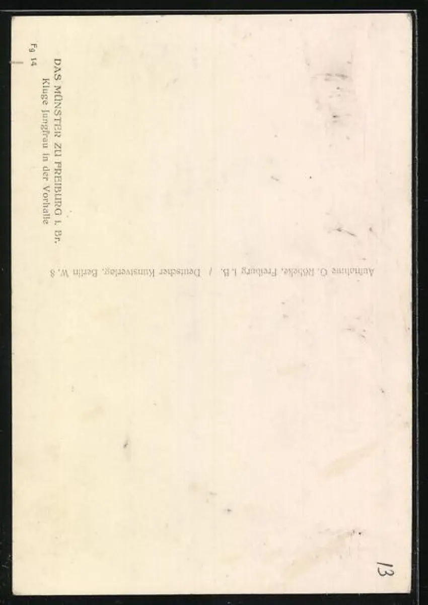 Foto-AK Deutscher Kunstverlag, Nr. Fg 14: Freiburg i. Br., Kleine Jungfrau in der Vorhalle im Münster zu Freiburg