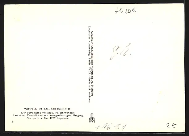 Foto-AK Deutscher Kunstverlag: Wimpfen im Tal, Partie an der Stiftskirche