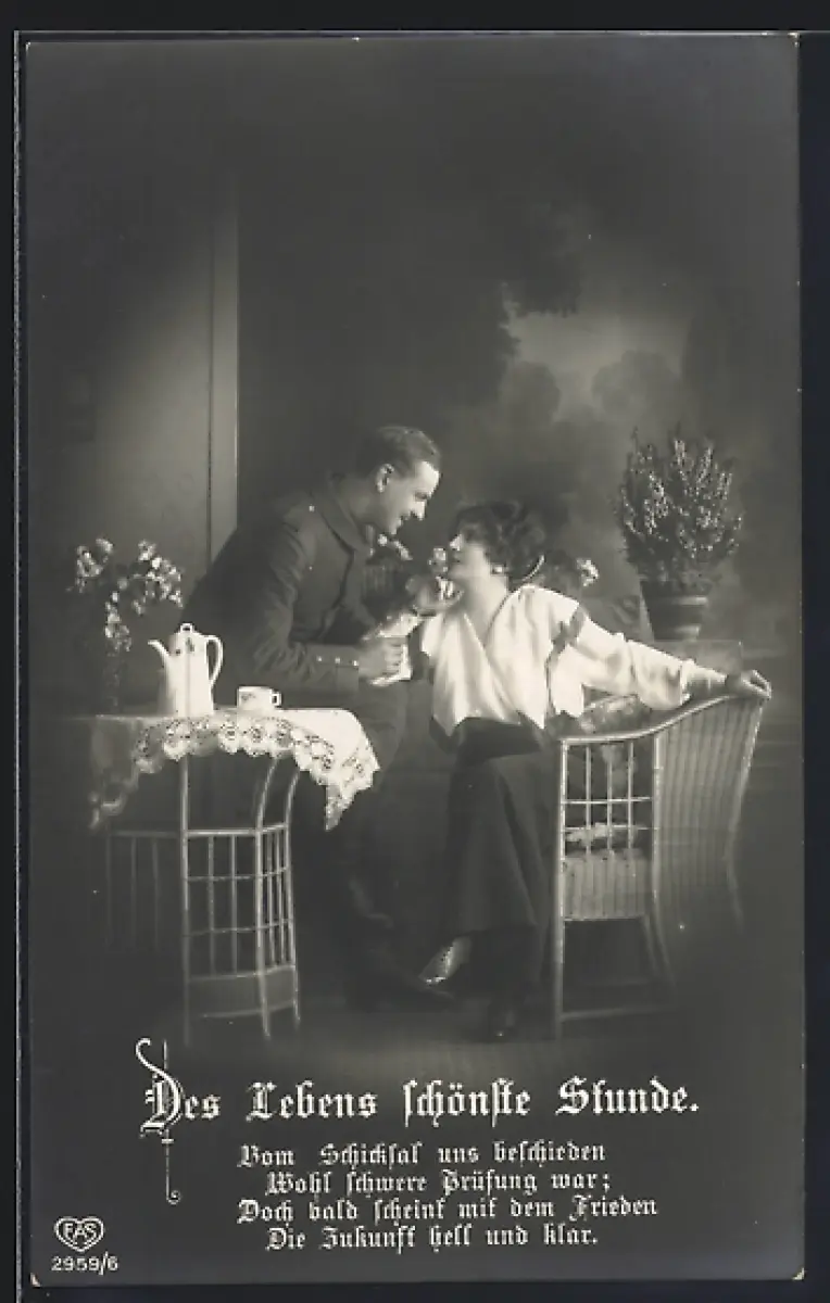Foto-AK EAS Nr. 2959/6: Des Lebens schönste Stunde, Vom Schicksal uns beschieden..., Soldat mit seiner Frau