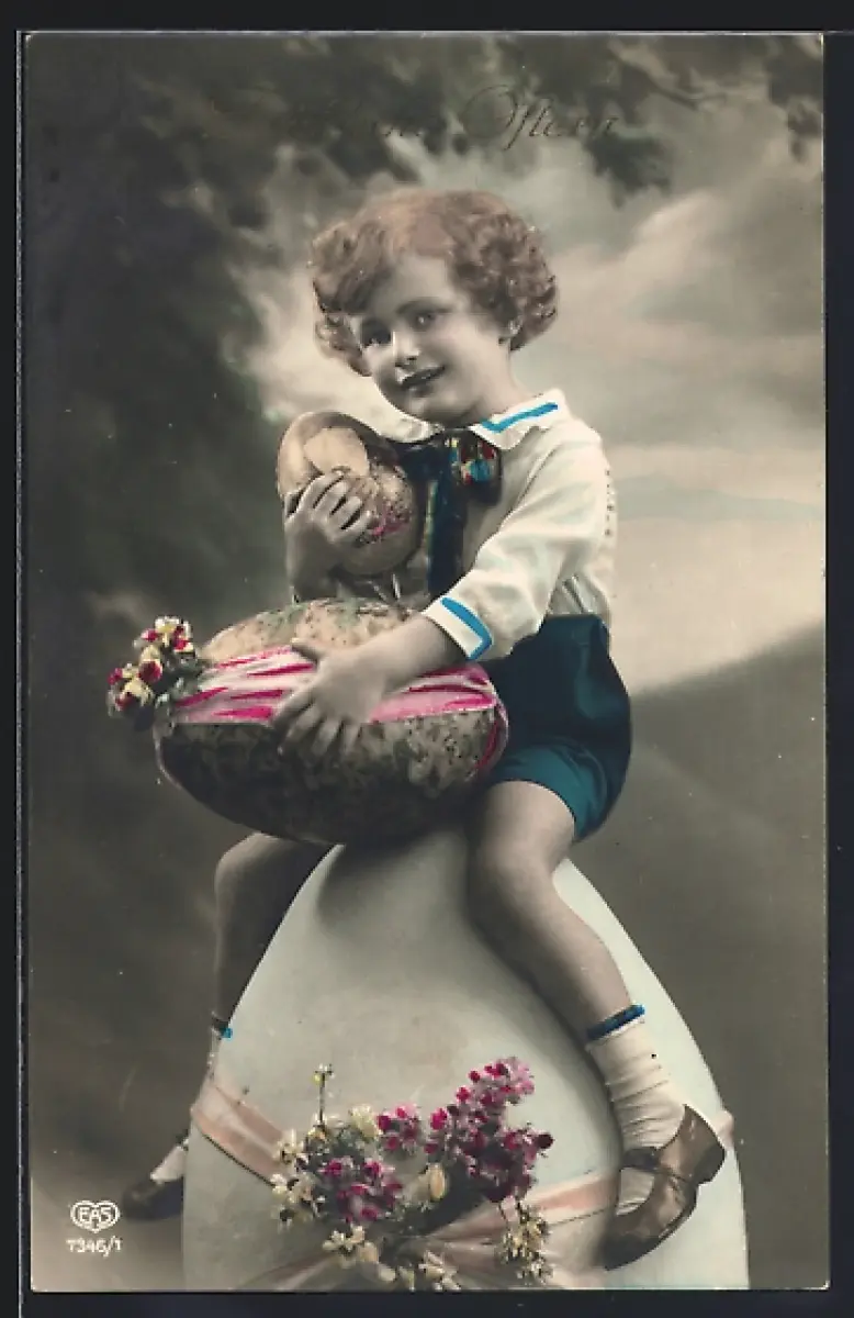 Foto-AK EAS Nr. 7346/1: Kleiner Junge mit Osterei