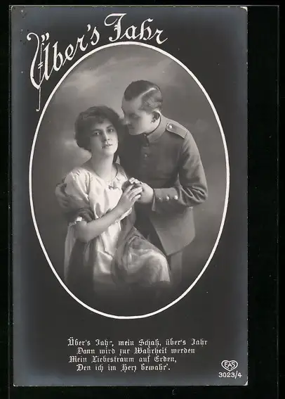 Foto-AK EAS Nr.3023 /4: Soldat in Uniform mit seiner Geliebten