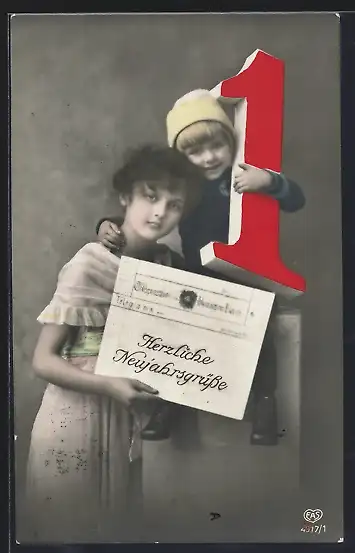 Foto-AK EAS Nr.4917 /1: Herzliche Neujahrsgrüsse von Mutter mit Kind