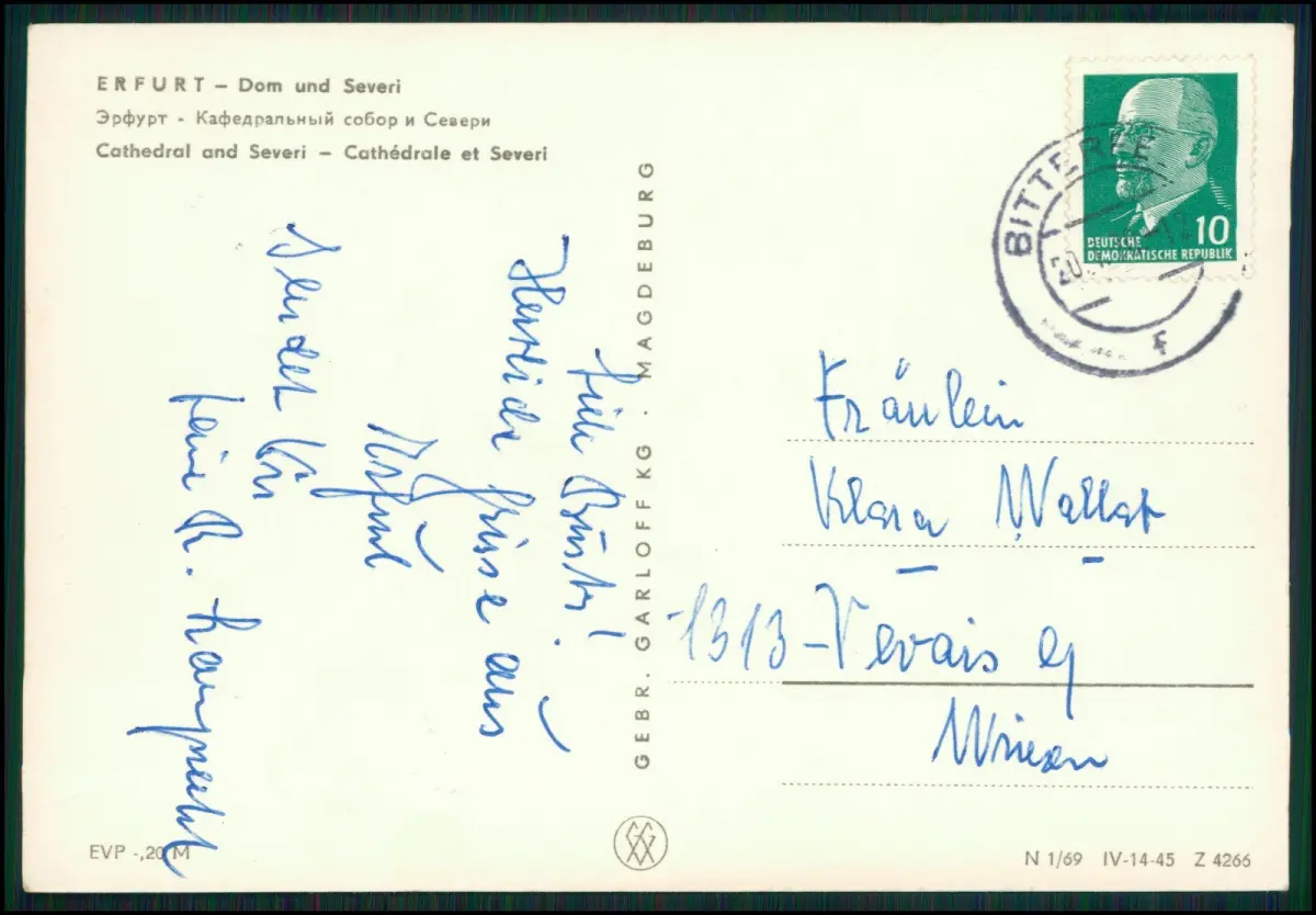 Gelaufen: mit DDR-Briefmarke (Walter Ulbricht, 10 Pfennig) – Stempel Bitterfeld